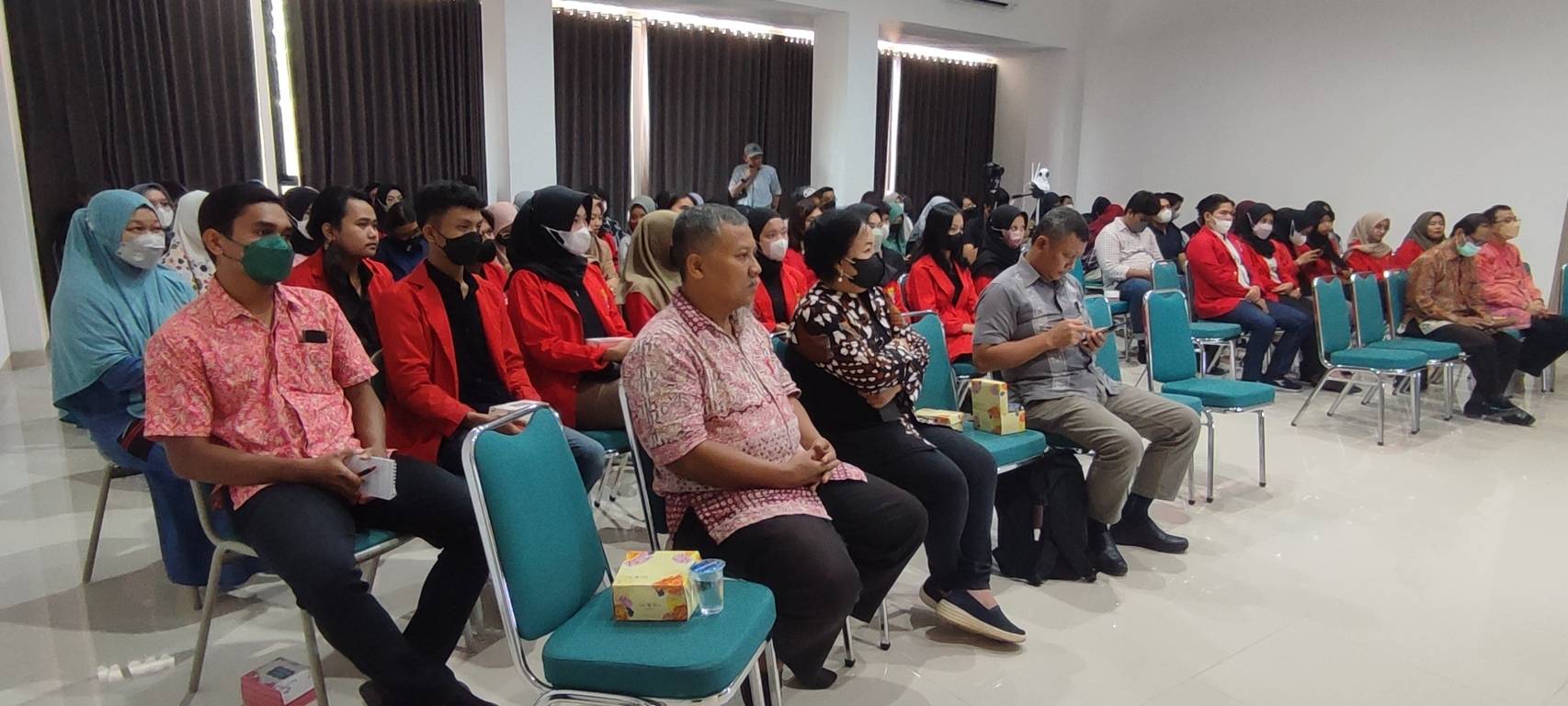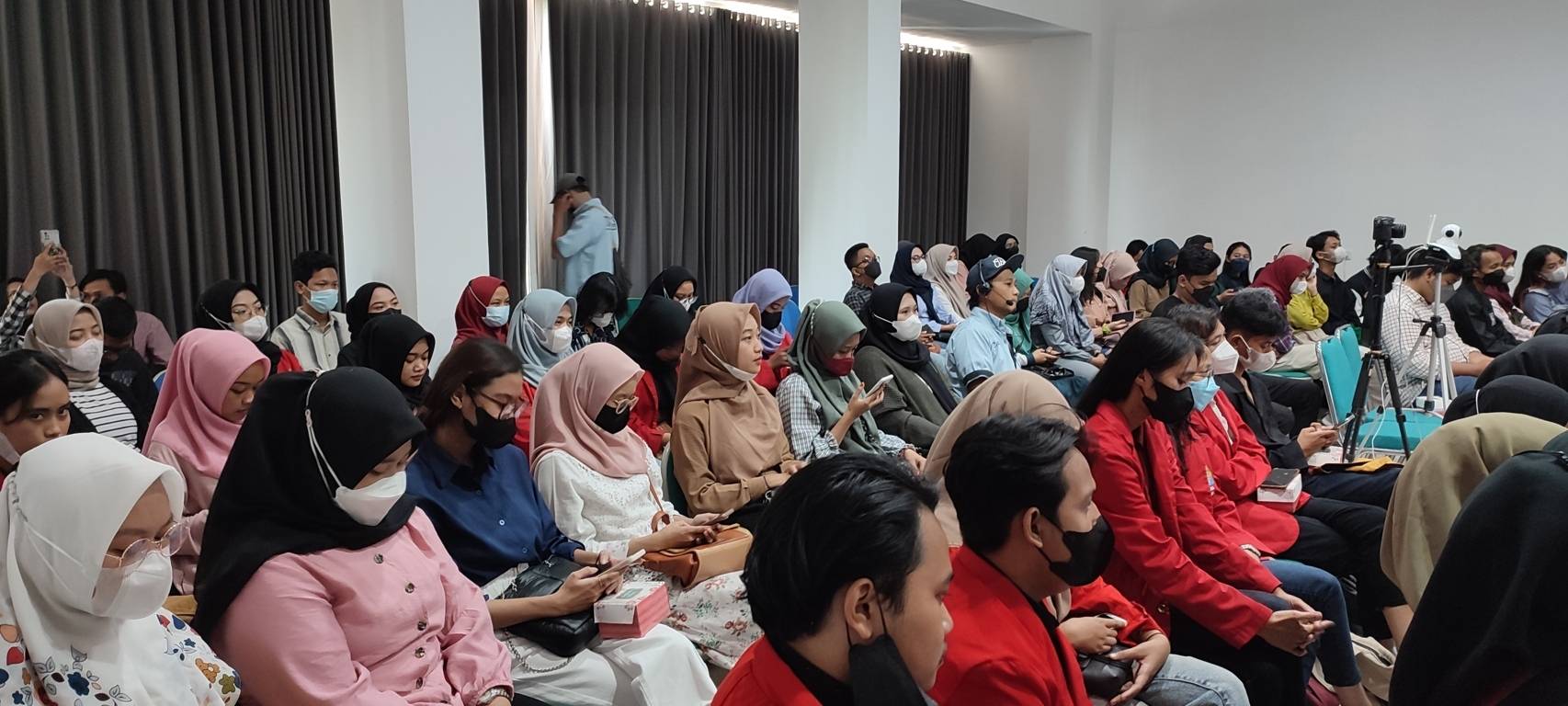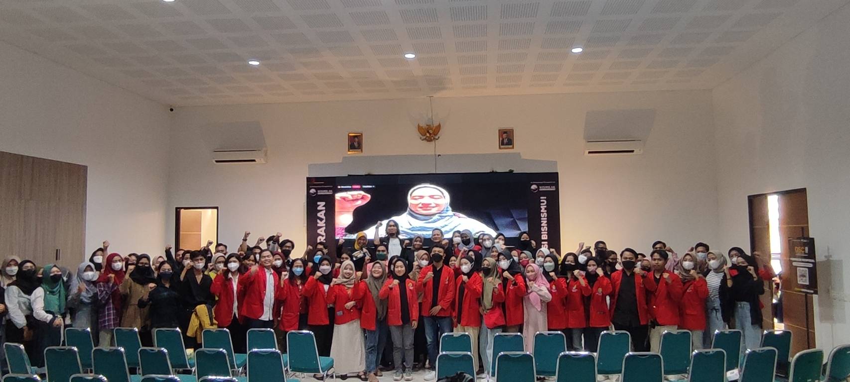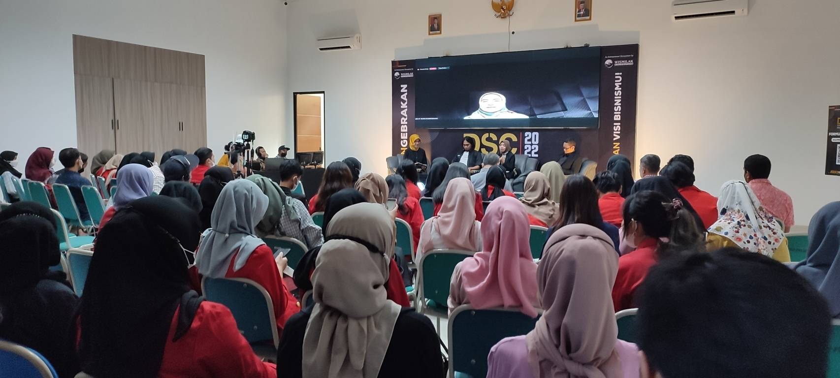 Kegiatan ini dilaksanakan Hybrid, Online melalui zoom sebanyak 400 peserta dan Offline di gedung Vokasi 100 peserta dengan tema “Menciptakan Ekosistem Calon Pengusaha Muda”